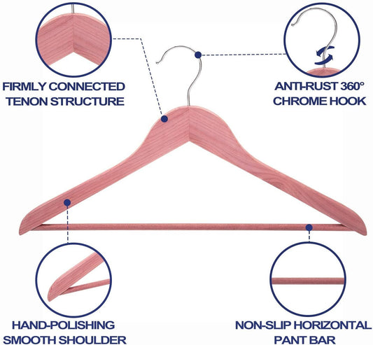 Top Quality Camphor Wooden Hanger with Trouser bar Anti-slip Notches