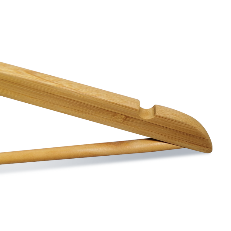 - Bamboo coat hanger Double Notch Feature on Both Sides to Secure Straps and Avoid Slips.
