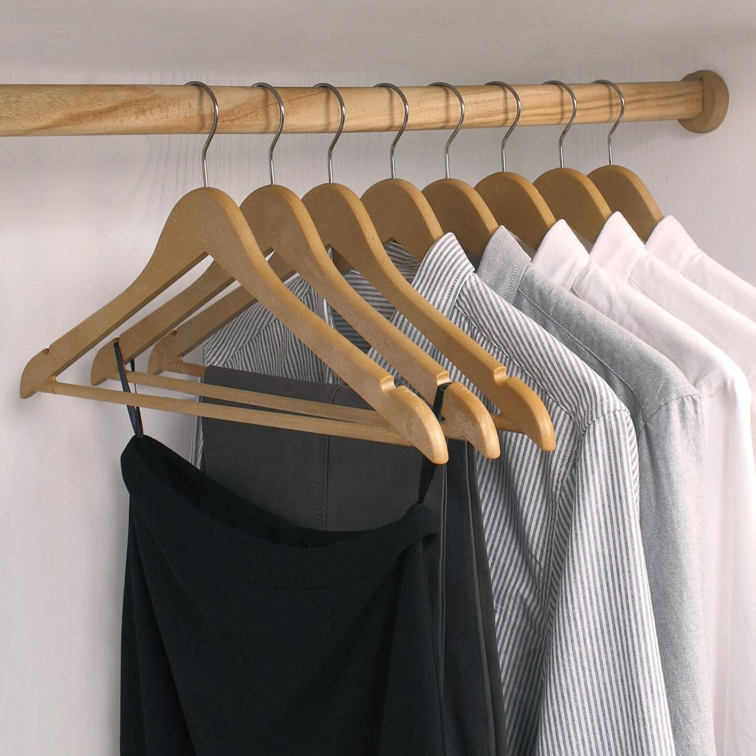 Besides, the Wooden-like Plastic Suit Hangers are made by PP materials, which is with lighter weight than the Wooden Shirt Hangers that with the same structure.