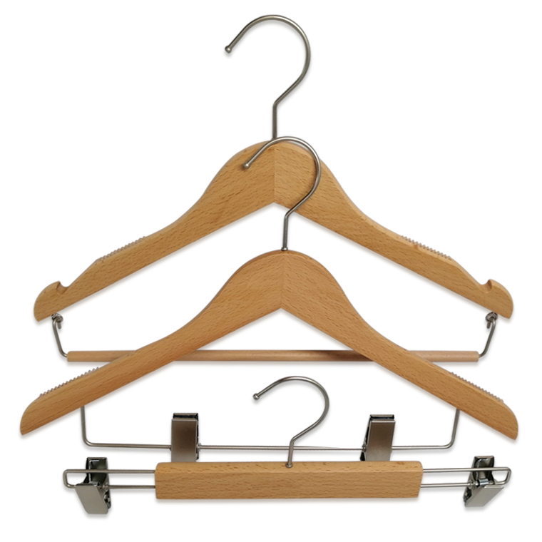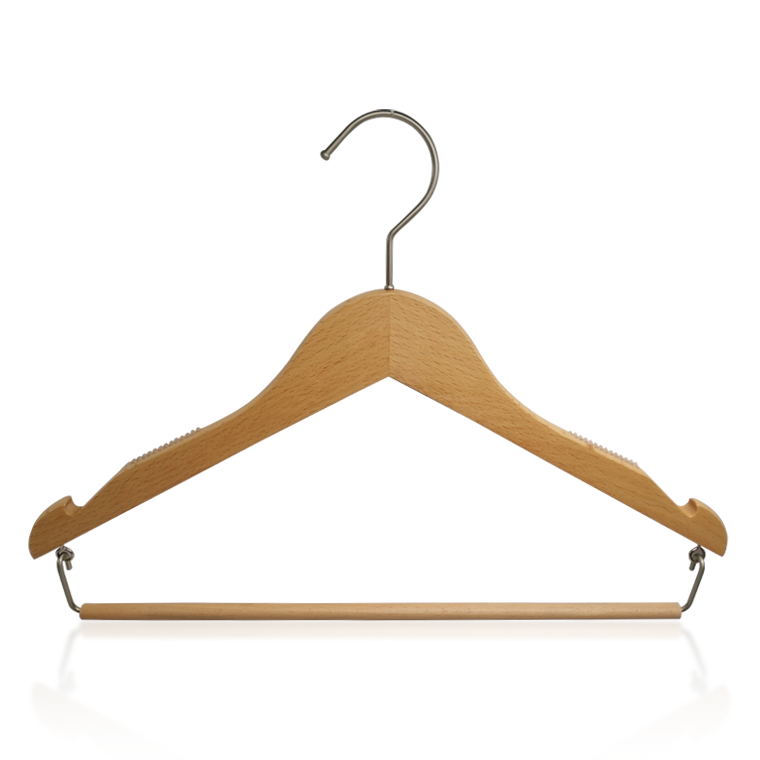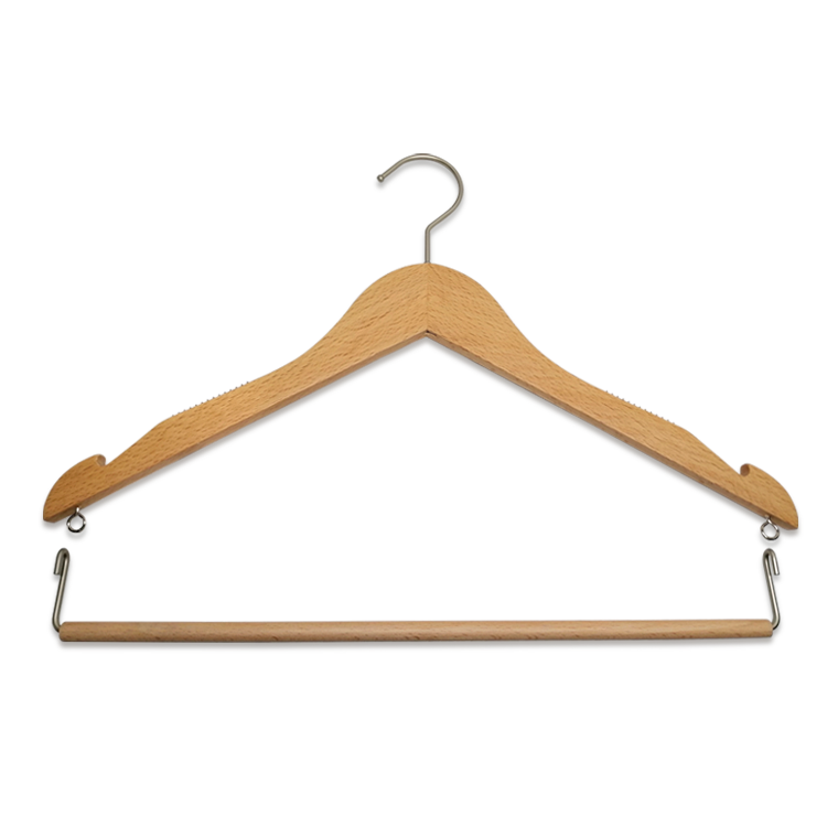 1.Wooden clothes hanger with round bar ,hanging pants and skirt is good choose